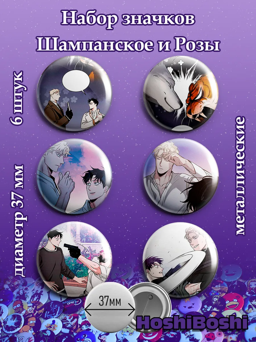 Набор из 6 металлических значков с изображениями из манхвы Шамп и розы ( Roses and Champagne ).