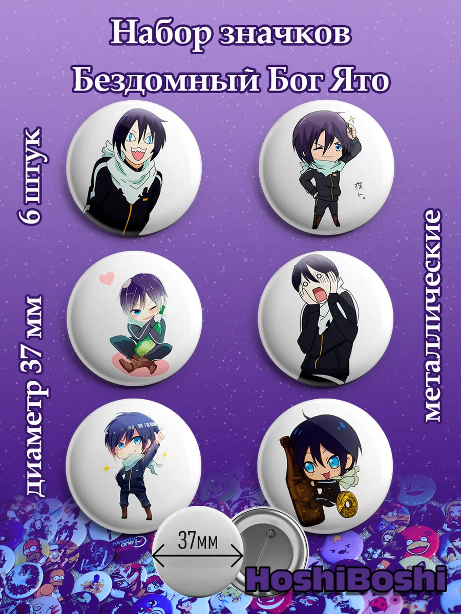Набор из 6 металлических значков с изображениями из аниме Бездомный Бог ( Noragami ).