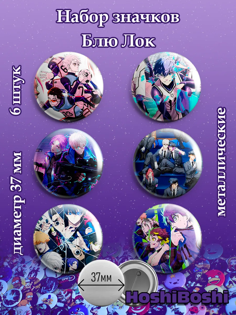 Набор из 6 металлических значков с изображениями из аниме Блю Лок ( Blue Lock ).