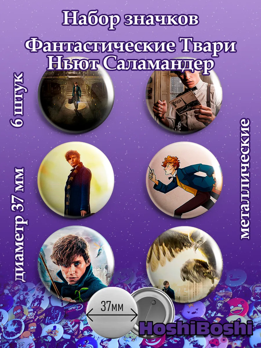 Набор из 6 металлических значков с изображениями из фильмов Фантастические твари ( Fantastic Beasts ).