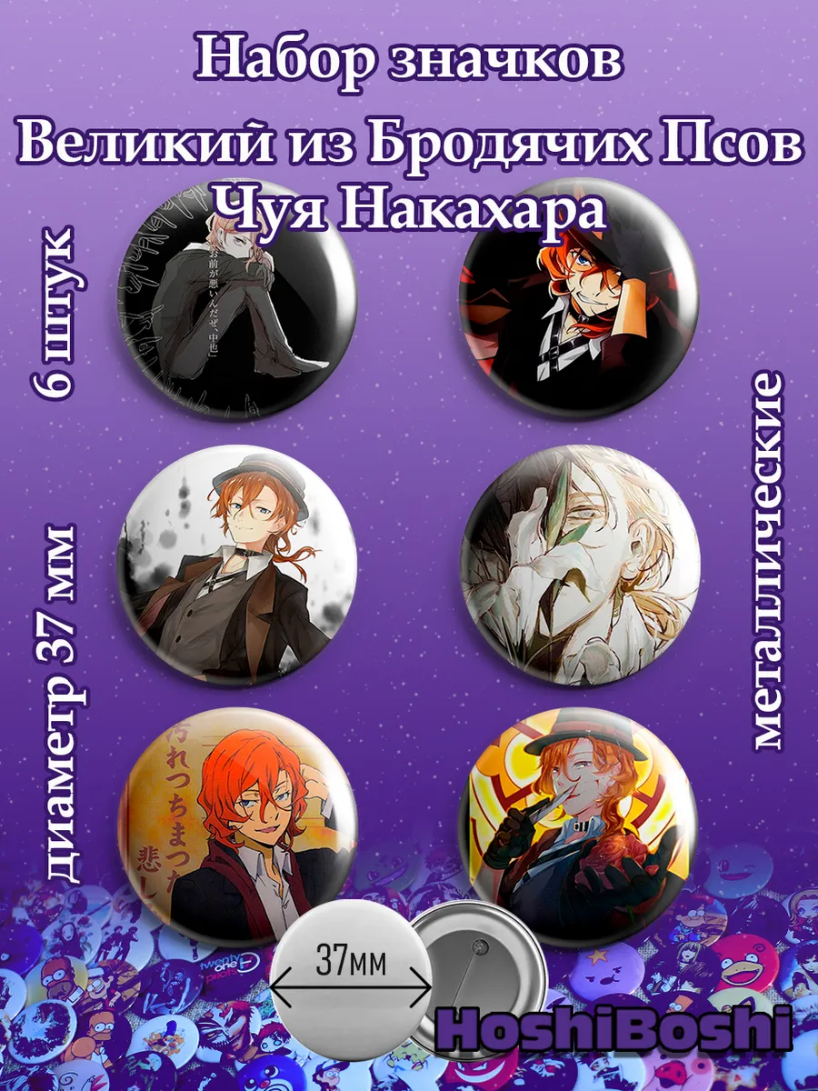 Набор из 6 металлических значков с изображениями из аниме Великий из Бродячих псов ( Bungo Stray Dogs ).