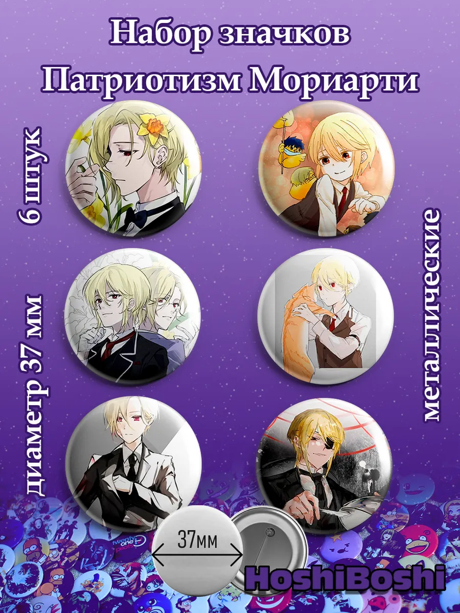 Набор из 6 металлических значков с изображениями из аниме Патриотизм Мориарти ( Yuukoku no Moriarty Moriarty the Patriot ).