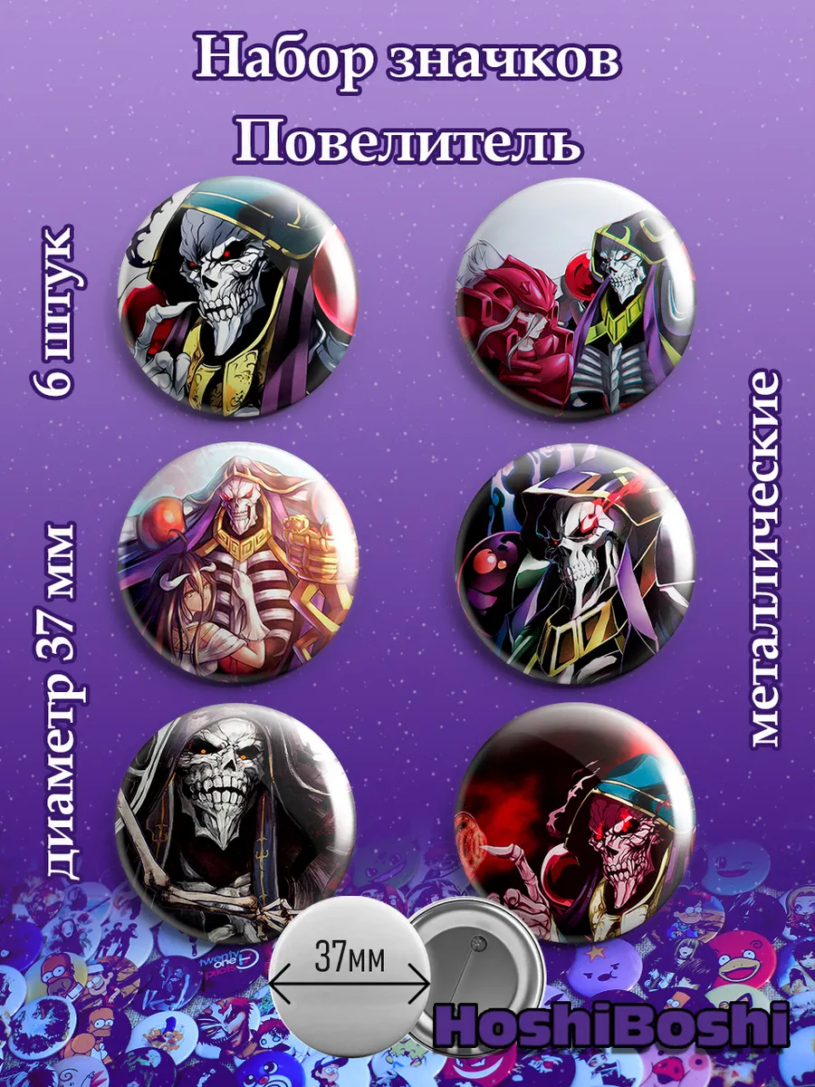 Набор из 6 металлических значков с изображениями из аниме Повелитель ( Overlord ).