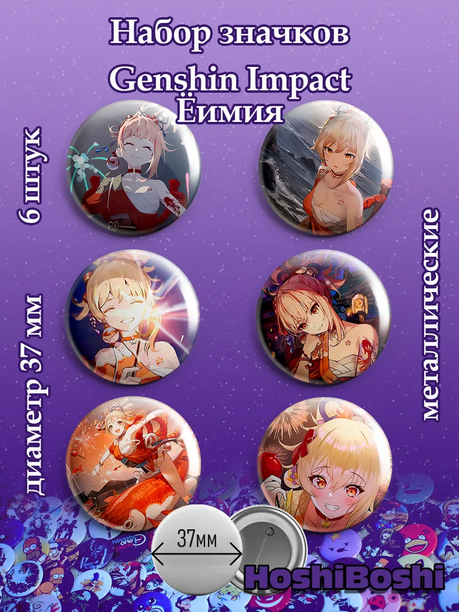 Набор из 6 металлических значков с изображениями из игры Геншин Импакт ( Genshin Impact ).