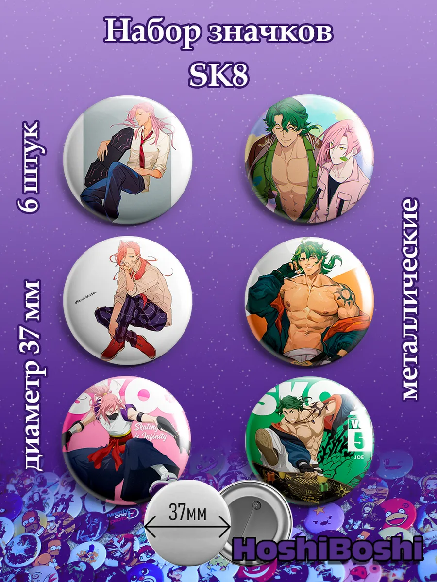 Набор из 6 металлических значков с изображениями из аниме Скейт в бесконечность СК8 ( SK8 the Infinity ).