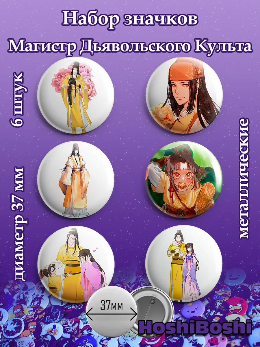 Набор из 6 металлических значков с изображениями из аниме Магистр Дьявольского Культа ( Mo Dao Zu Shi ).