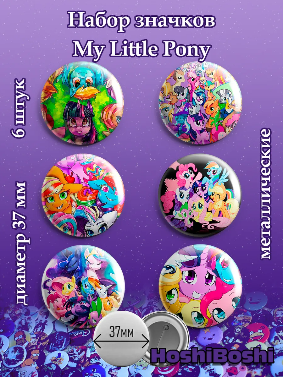 Набор из 6 металлических значков с изображениями из мультсериала Дружба это чудо ( My Little Pony ).