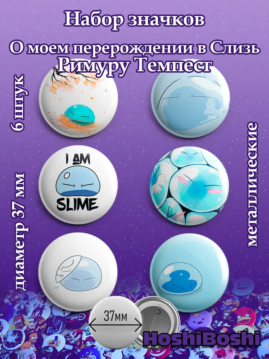 Набор из 6 металлических значков с изображениями из аниме О моем перерождении в слизь ( Tensei shitara Slime Datta Ken ).