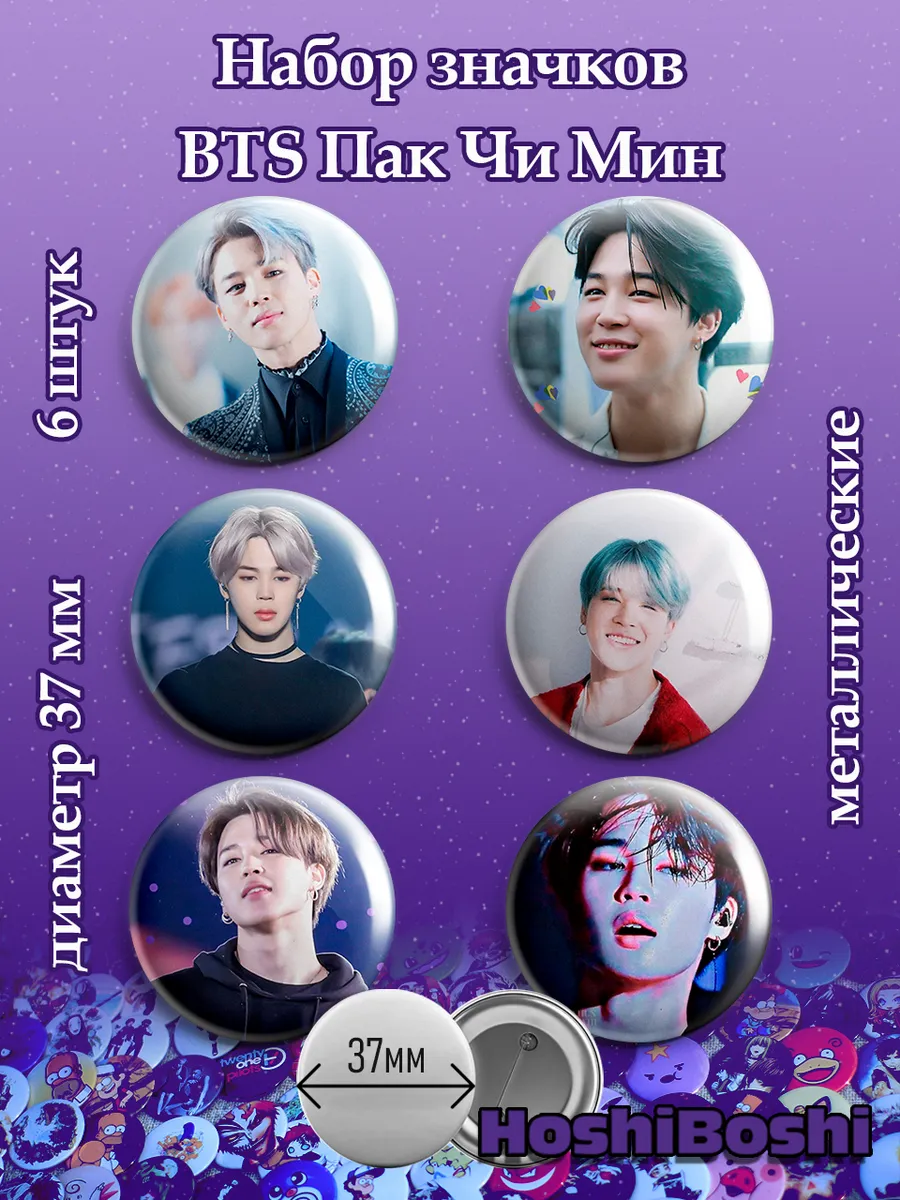 Набор из 6 металлических значков с изображениями с Кей-Поп группой БТС ( BTS ).