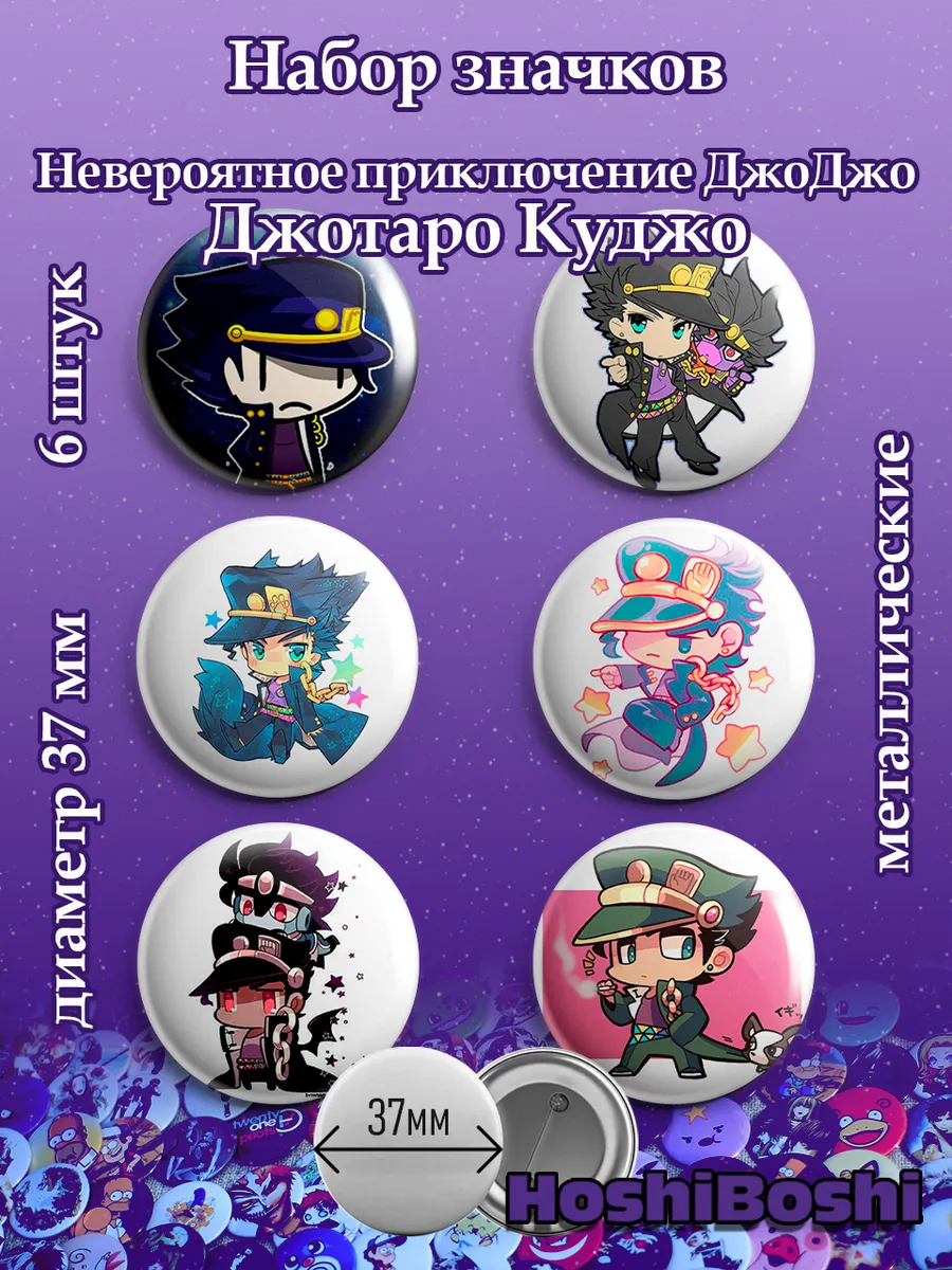 Набор из 6 металлических значков с изображениями из аниме Невероятные Приключения Джо Джо ( JoJo's Bizarre Adventure ).