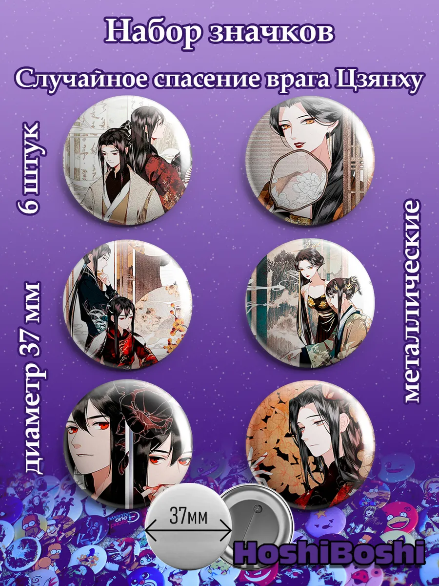 Набор из 6 металлических значков с изображениями из манхвы Случайное спасение врага Цзянху ( Accidental rescue of Jianghu's enemy Bu Xiaoxin Jiule Jianghu Gongdi ).