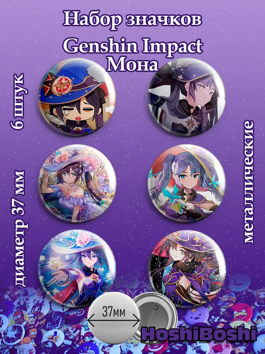 Набор из 6 металлических значков с изображениями из игры Геншин Импакт ( Genshin Impact ).