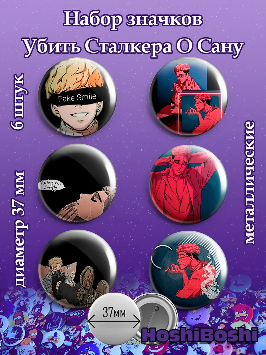 Набор из 6 металлических значков с изображениями из аниме Убить сталкера ( Killing Stalking ).