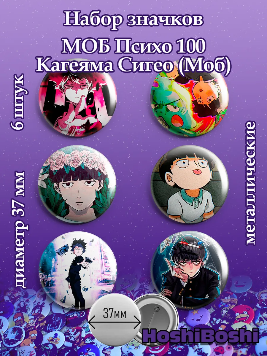 Набор из 6 металлических значков с изображениями из аниме Моб Психо 100 ( Mob Psycho 100 ).