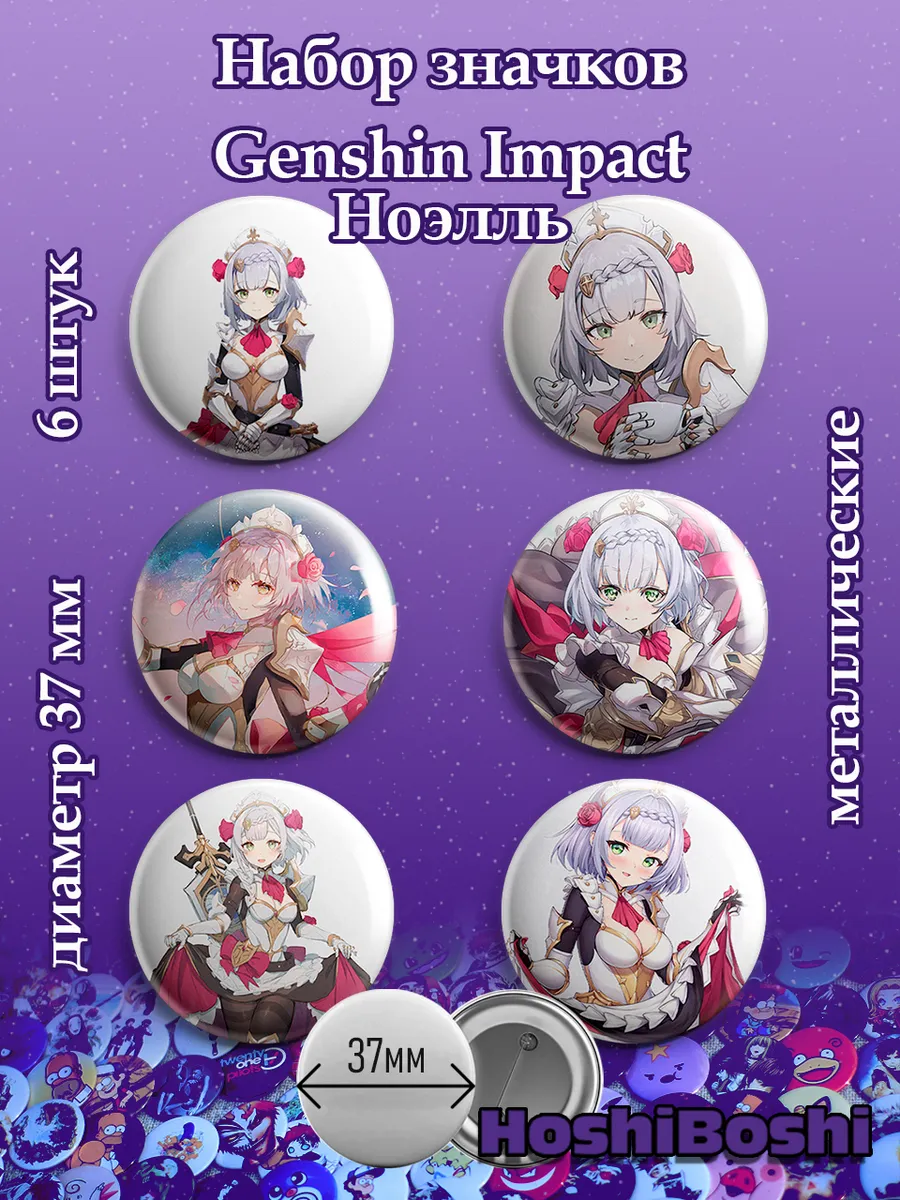 Набор из 6 металлических значков с изображениями из игры Геншин Импакт ( Genshin Impact ).