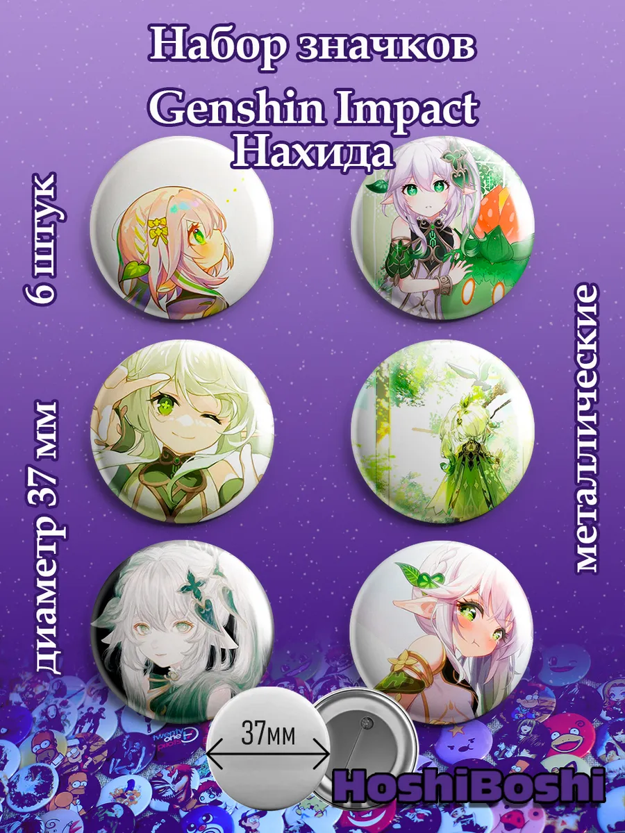 Набор из 6 металлических значков с изображениями из игры Геншин Импакт ( Genshin Impact ).