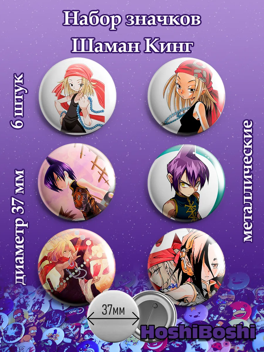 Набор из 6 металлических значков с изображениями из аниме Шаман Кинг ( Shaman King ).