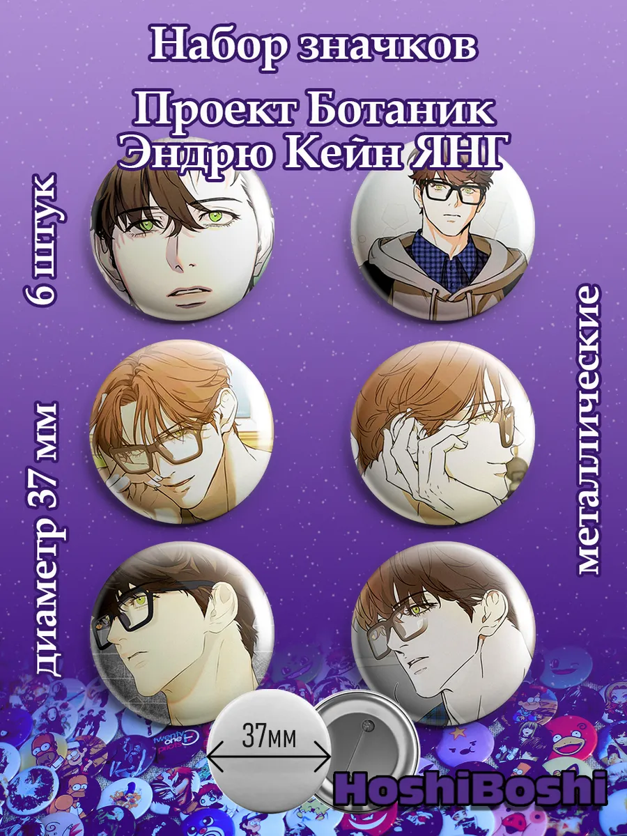 Набор из 6 металлических значков с изображениями из манхвы Проект Ботаник ( Nerd Project ).