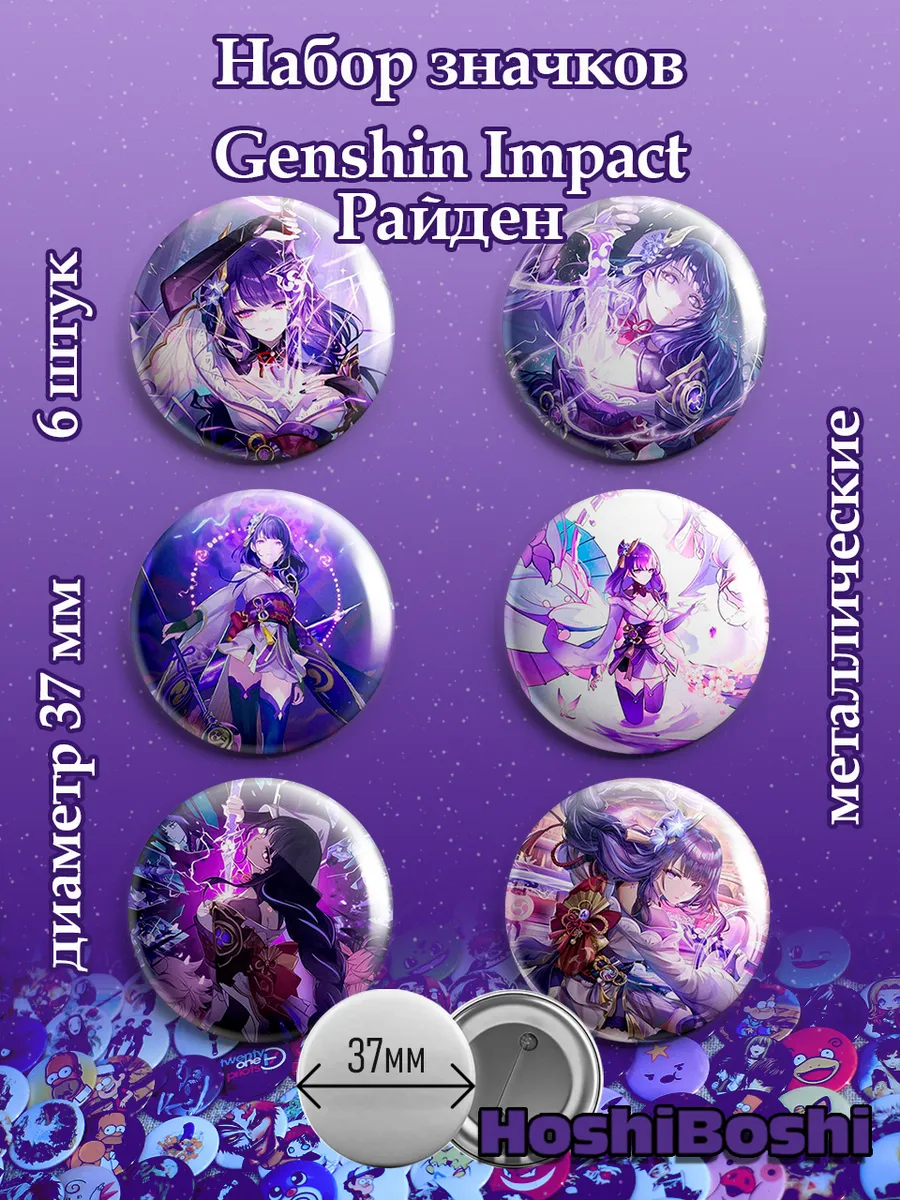 Набор из 6 металлических значков с изображениями из игры Геншин Импакт ( Genshin Impact ).