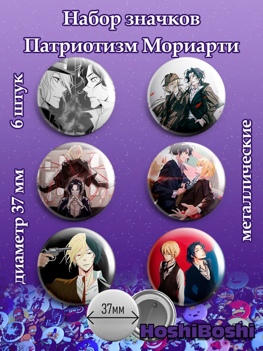 Набор из 6 металлических значков с изображениями из аниме Патриотизм Мориарти ( Yuukoku no Moriarty Moriarty the Patriot ).
